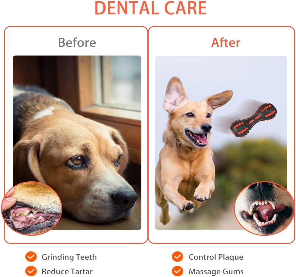 Promotes Optimal Health: The dumbbell design with its uneven surface can help brush your pet's teeth both horizontally and vertically, promoting better dental hygiene. It's also perfect for Changing bad chewing habits, relieving anxiety, reducing boredom, and even controlling barking problems. Help keep your pet healthy and happy!